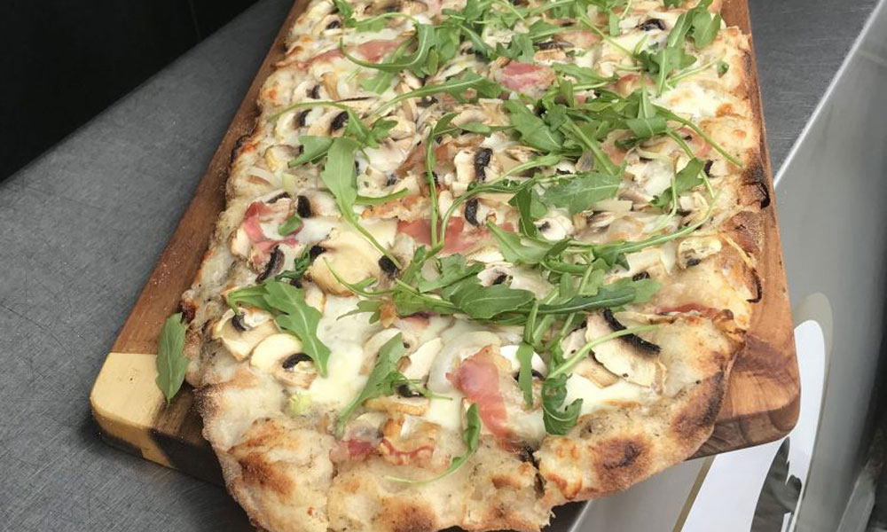 Bij onze pizzaproeverijen bereiden we speciale pizza’s van ca. 60×30 cm, die we maken volgens een speciaal Italiaans recept van hoog gehydrateerd deeg. Onze pizza’s hebben een unieke bodem die krokant is aan de buitenkant en luchtig aan de binnenkant en bevatten weinig zout en weinig koolhydraten. We serveren onze pizza’s met allerlei verschillende luxe toppings op mooie houten planken uit. Voor- en nagerechten behoren ook tot de mogelijkheden.