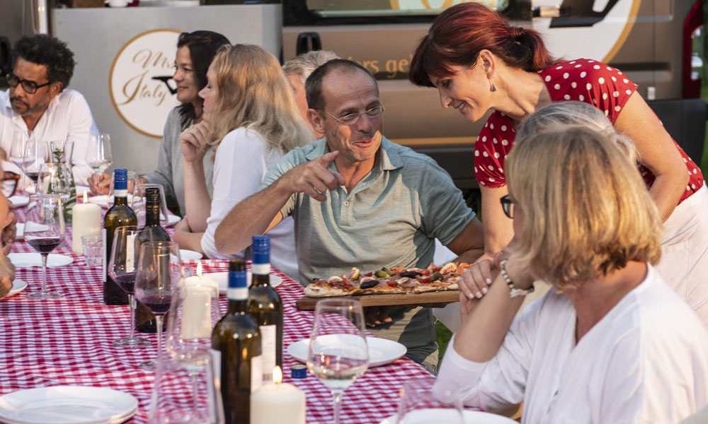 Door ons flexibele concept is een proeverij zowel geschikt voor settings binnen als buitenshuis. U hoeft als gastvrouw en gastheer niets aan het eten te doen; u kunt dus heerlijk meegenieten en u met uw gasten onderhouden. In onze professioneel uitgeruste pizzabus nemen we alle benodigdheden mee voor een succesvol 100% Italiaans diner. En de ovens zijn al warm als we aankomen. Het enige wat we nodig hebben is voldoende parkeerruimte (én hongerige gasten;)
